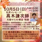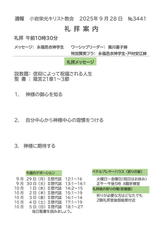礼拝案内 日曜日 午前10:30~(毎週)2階礼拝堂にて ライブ配信(YouTube)の礼拝出席届けは、こちら から 今週の週報 イベント・お知らせ 2025年10月5日(日)特別礼拝 2025年8月1~3日サマーキャンプ 2025年6月15日CBC創立75周年礼拝 2025年4月27日こどもフェスティバル わたしたちは、日本アッセンブリーズ・オブ・ゴッド教団に属するプロテスタントのキリスト教会です。エホバの証人、モルモン教、統一教会等とは関係ありません。