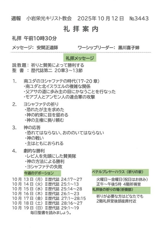 日曜日 午前10:30~(毎週)2階礼拝堂にて
